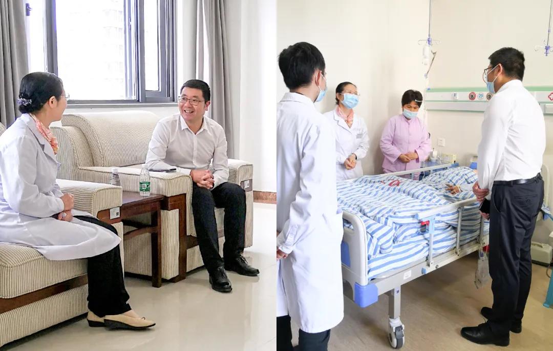 4月29日,西湖区桃花镇党委书记吴涛、副镇长秦海龙一行来到医院看望傅女士,亲切嘱咐傅女士静心休养,实现早日康复。