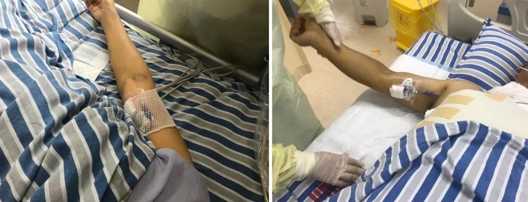 图为护士长舒娟成功为两位患者实施超声引导下改良赛丁格PICC穿刺技术